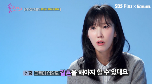 이수경은 8일 SBS Plus, E채널 ‘솔로라서’에 출연해 오윤아와 결혼과 육아에 대한 이야기를 나눴다.
