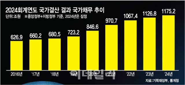 올해 역시 국가채무는 늘어날 전망이다. 조기 대선에 따른 선심성 복지정책과 경기 부양 및 트럼프발(發) 통상 리스크 대응 등에 쓰일 대규모 추경 편성이 불가피한 상황이어서다. 당장 추경 재원인 세계잉여금(세입이입금 2185억원)이 바닥나면서 국고채 발행을 해야 하는데, 이는 고스란히 나랏빚으로 남게 된다.