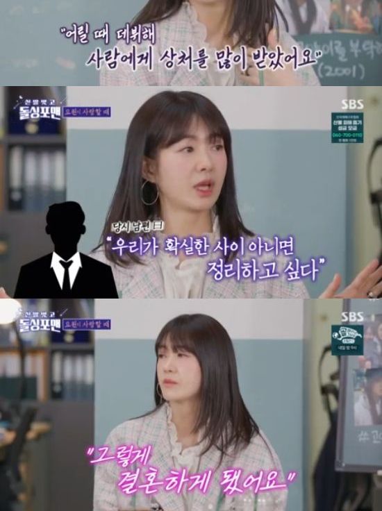 이어 "고백은 남편이 먼저 했다. 남편이 저한테 '나는 아는 여자가 아무도 없다. 확실한 관계가 아니면 정리를 하고 싶다'고 하더라. 일주일의 생각할 시간을 달라고 했고, 일주일동안 매일 만났다. 그러면서 정이 들었다"고 했다.
