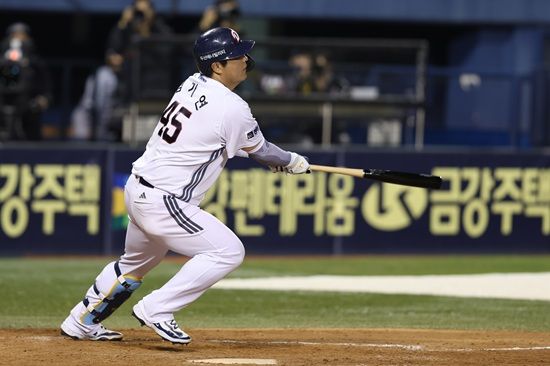 이번에도 양의지가 해결사로 나섰다. 양의지는 8회 말 선두타자로 나와 좌익수 뒤 2루타를 날렸다. 두산은 이어진 1사 3루 기회에서 상대 폭투로 결국 5-5 동점을 이끌었다.