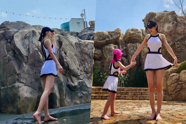 공개된 사진 속 박은지는 가족들과 함께 속초 여행을 떠난 모습이다. 특히 딸과 함께 커플 수영복을 입고 포즈를 취하고 있는 박은지는 아이돌 시절 못지않은 몸매와 비주얼로 눈길을 사로잡았다. 청순한 디자인에 옆구리 트임으로 포인트를 준 수영복 자태가 섹시함을 더했다.