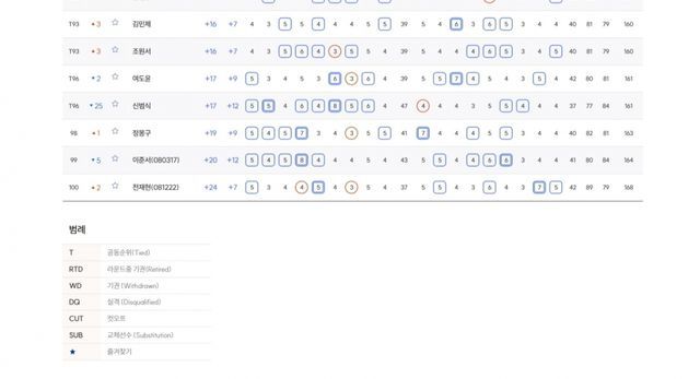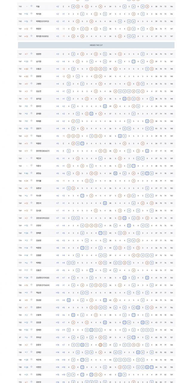 컷오프 T51.오동규 +4, T66.이시후 +6, T80.백승연 +10, T88.강재민 +14
