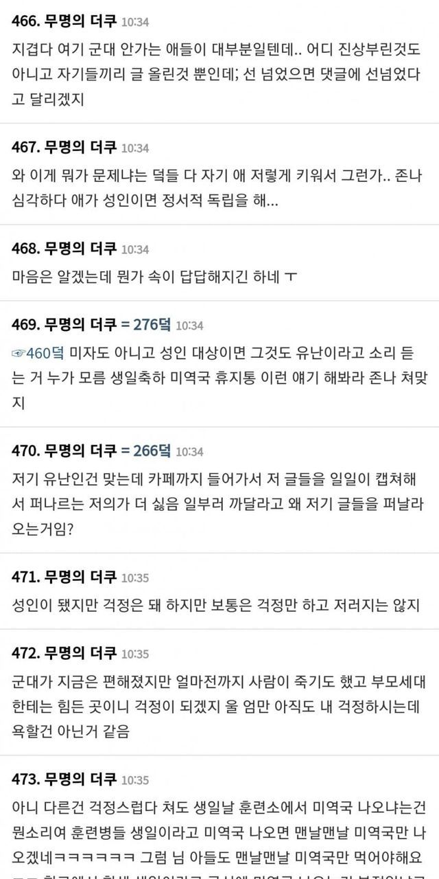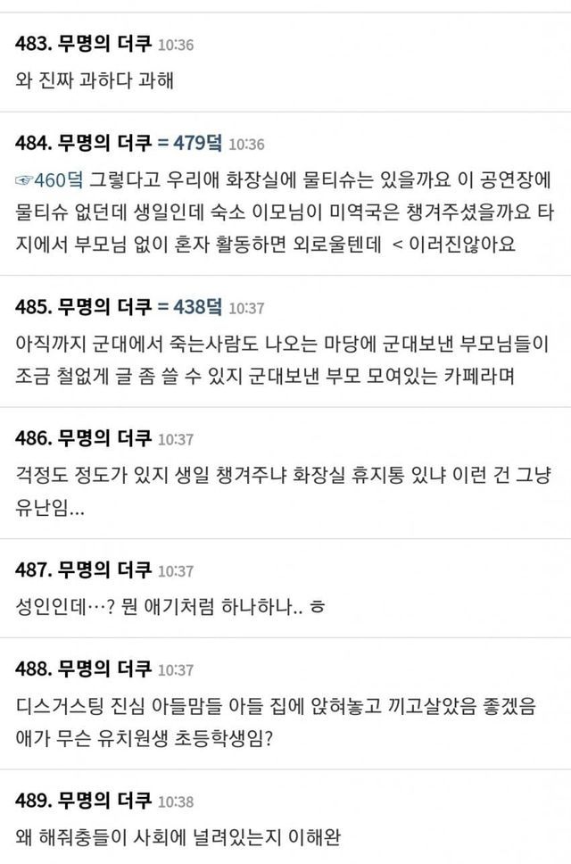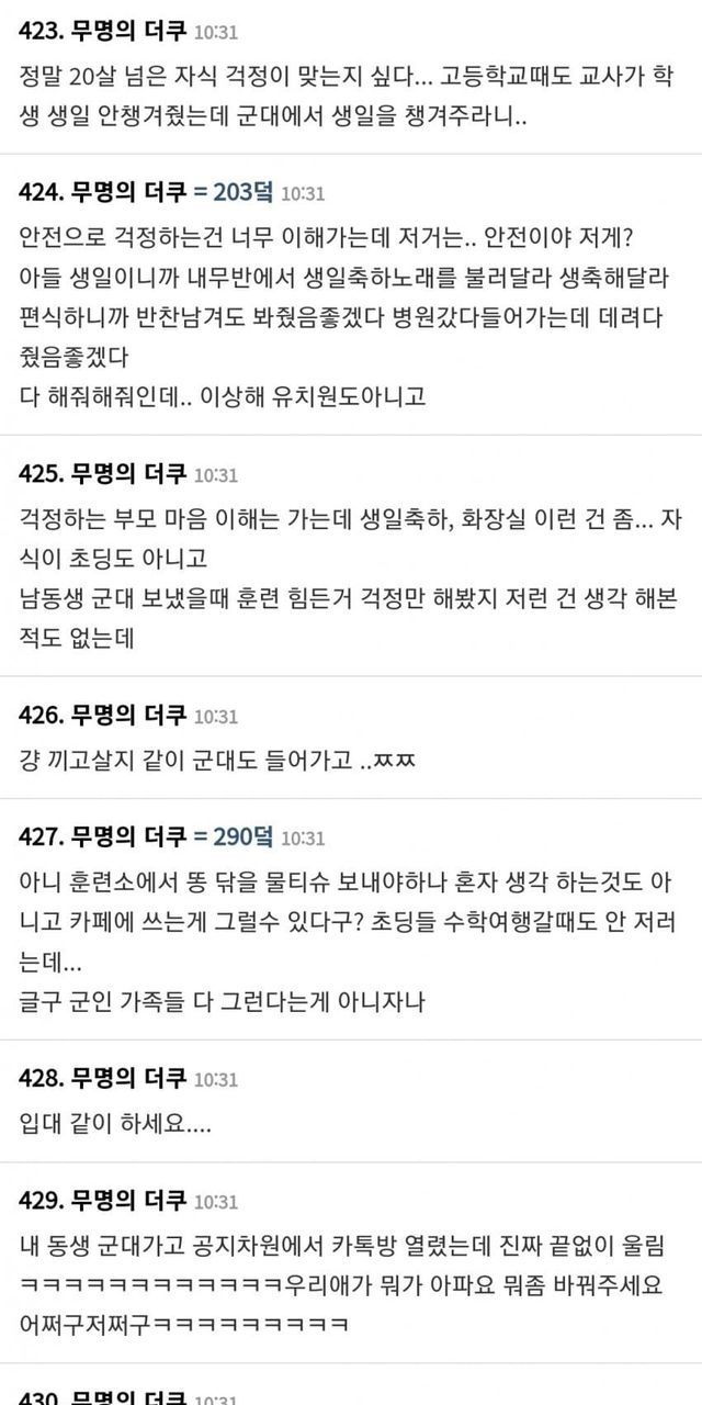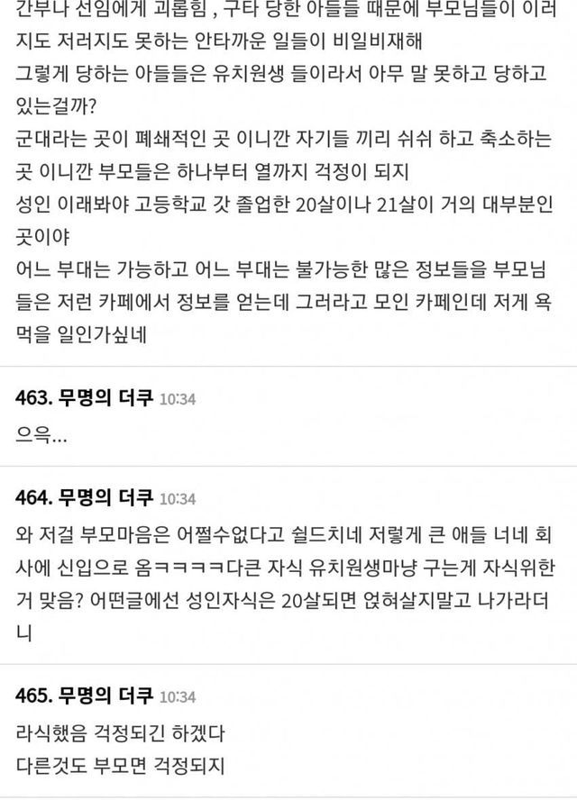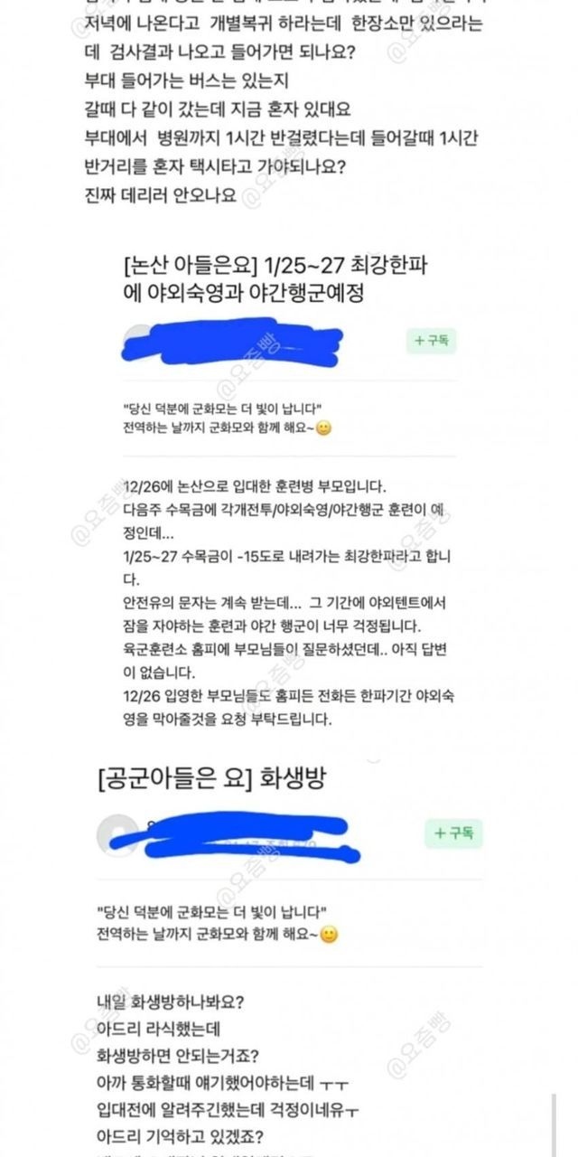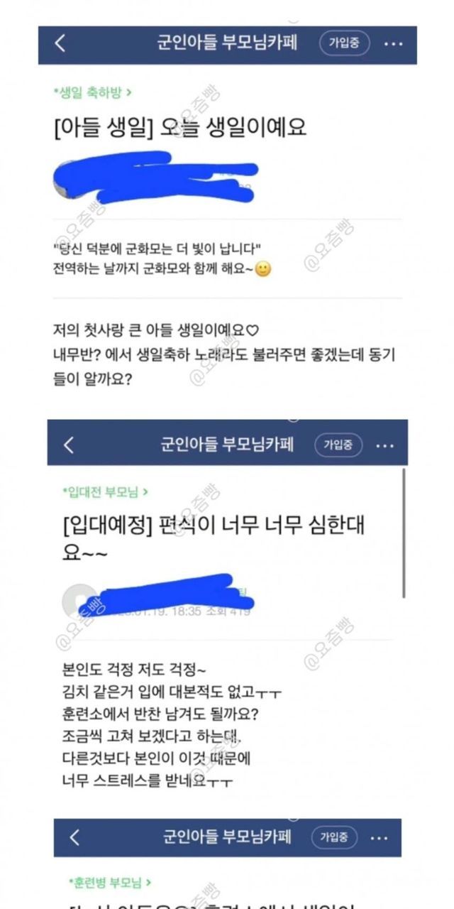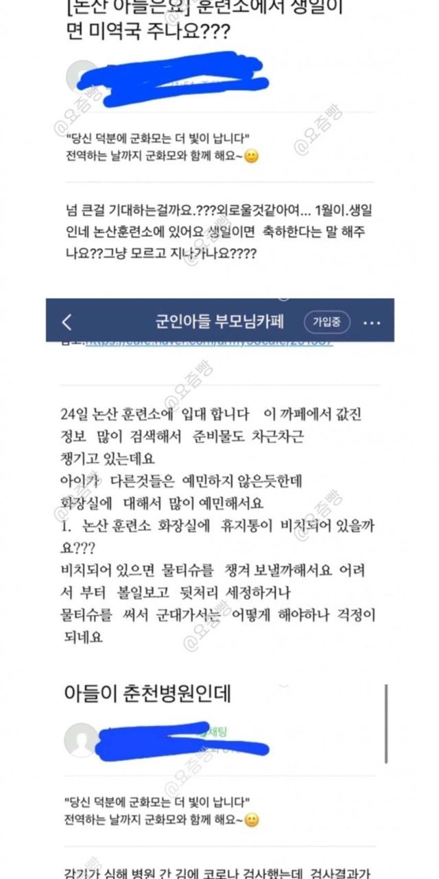 요즘 군인 아들 부모님 카페 근황 (+ 여초 반응)
