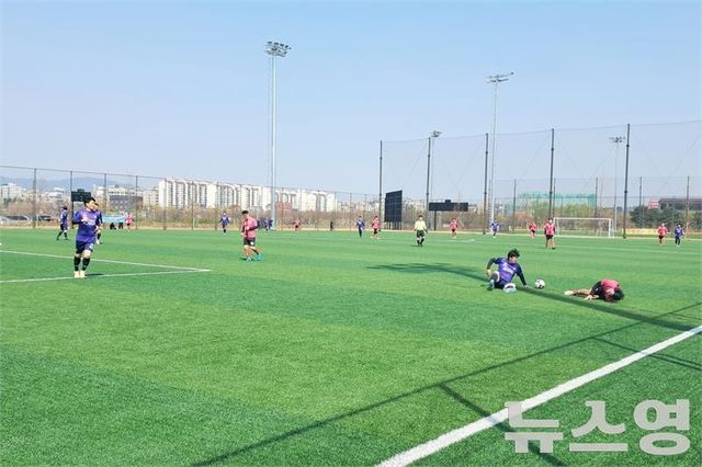 국제 규격에 준하는 인조 잔디 축구장은 이달 주말 대관이 이미 끝났을 만큼 동호인들 사이에 인기다. 조명타워가 있어 야간 경기도 할 수 있다.