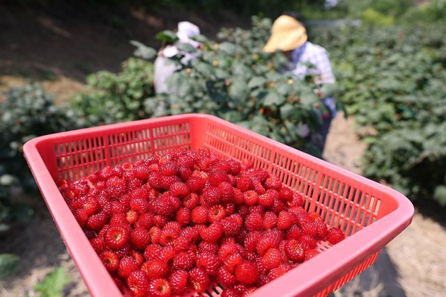 2021년 6월 8일 오전 경북 포항시 남구 장기면 수성리에서 농민들이 산딸기 수확 작업을 하고 있다 / 뉴스1