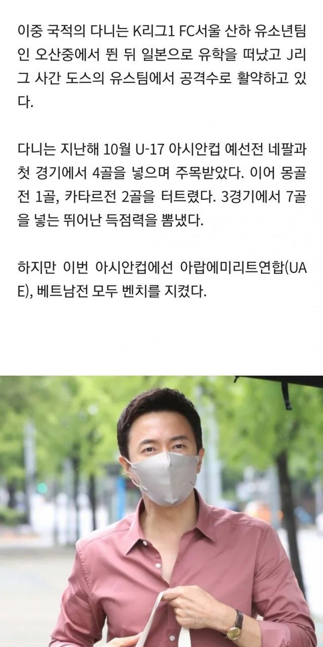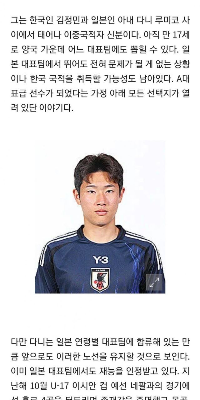 김정민 아들 '다니 다이치', 한국 아닌 일본 대표팀 선택 이유