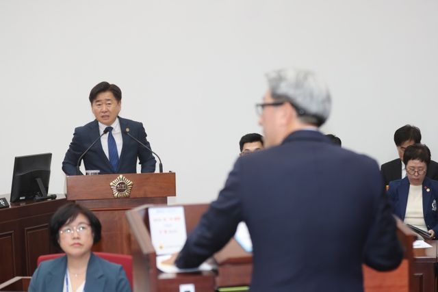 김 의원과 오 지사는 제주~칭다오 항로 개설 지연 책임 소재를 놓고도 충돌했다.