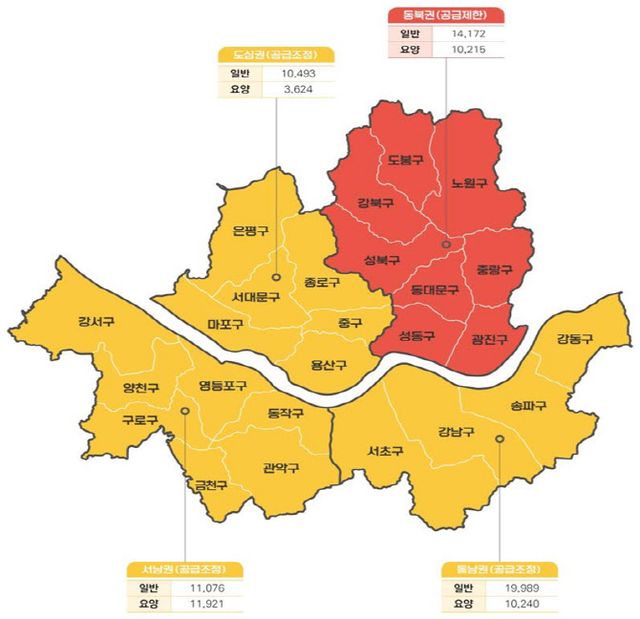 세부 내용을 살펴보면 서울은 서울 동북권은 일반병상 공급 제한 지역으로, 나머지 지역은 공급 조정 지역으로 분류됐다. 서울 동북권은 △성동구 △광진구 △동대문구 △중랑구 △성북구 △강북구 △도봉구 △노원구가 해당한다. 공급 제한·조정지역은 병상 수요 대비 병상 공급이 과잉인 지역이다.