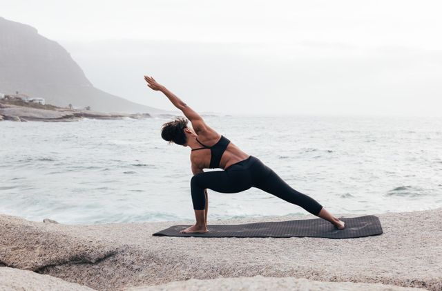 한쪽 다리를 굽히고 다른 쪽 다리를 곧게 뻗은 채 상체를 기울여 한 손은 바닥에 다른 손은 천장을 향해 뻗으며 옆구리를 늘린다. 하체를 강화하는 자세다.