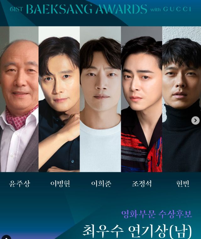 작품 주연상 남자 후보로는 넷플릭스 '폭싹 속았수다' 박보검, tvN '선재업고 튀어' 변우석, 티빙 '좋거나 나쁜 동재' 이준혁, 넷플릭스 '중증외상센터' 주지훈, MBC '이토록 친밀한 배신자' 한석규다.