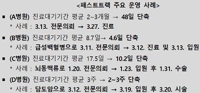 일부 병원에서는 평균 2~3개월이던 진료대기기간이 48일 단축됐고, 급성백혈병 환자의 경우 의뢰 다음날 진료 및 입원이 가능해졌다.