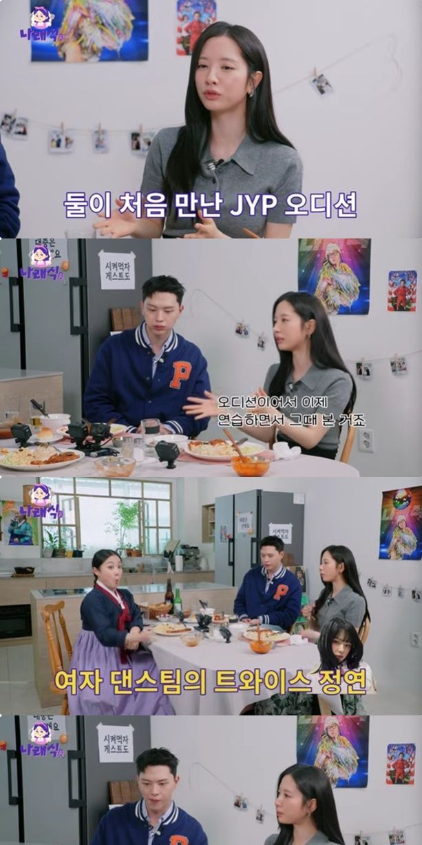 김지연은 "우리가 대외적으로 얘기를 한 적은 없었다. 우리가 인생 첫 가수 오디션을 같이 봤다. JYP 오디션을 같이 보고 같이 큐브 연습생으로 있다가 16년 지기다. 전국을 돌면서 2주 동안 준비해서 쇼케이스를 같이 하는 오디션이어서 연습하면서 봤다. 그때 여자 댄스팀에 트와이스 정연이 있었고 남자 댄스팀에 방탄 제이홉, 배우 나인우가 있었다"라고 돌아봤다.