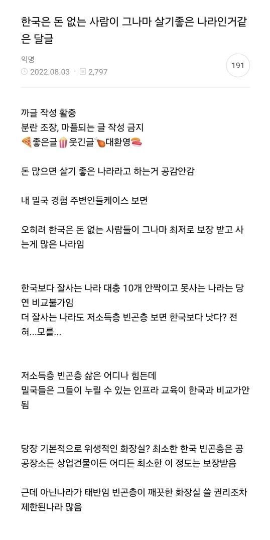 어느정도 맞는거 같은 한국이 그나마 살기좋은 나라인거 같다는 글