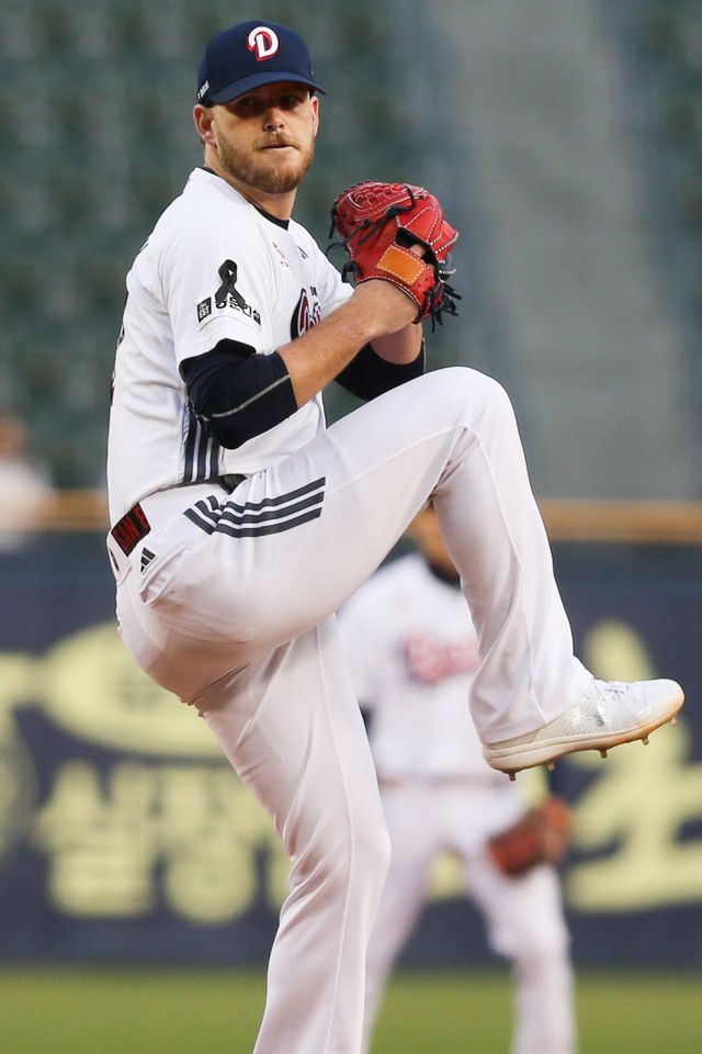 두산 베어스 콜 어빈(31)이 자신의 실책으로 패전 위기에 놓였다.