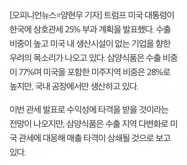 미국 관세 폭탄에도 노상관이라는 삼양ㅋㅋㅋ