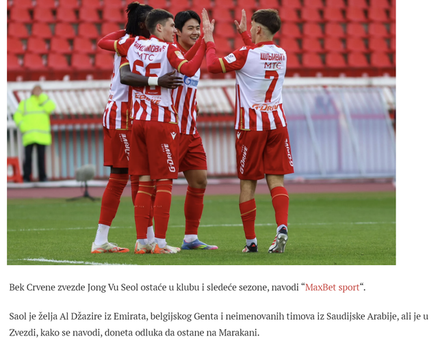 매체는 '막스벳 스포츠' 인용한 기사를 통해 "'즈베즈다는 설영우에 대한 제안을 다 거부하기로 했다"며 "다음 시즌에도 구단에 남을 예정이다"라고 했다.
