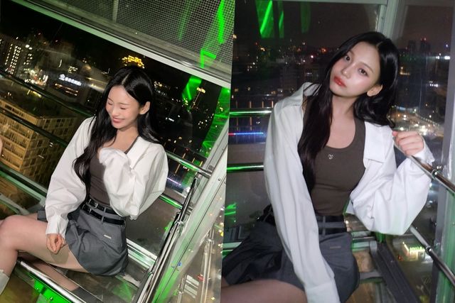 공개된 사진 속 엄지는 몸에 딱 달라붙는 민소매 톱에 초미니 스커트를 입고 관람차를 타고 있는 모습이다. 짧은 치마 탓에 훤히 드러난 허벅지가 눈길을 끄는 가운데, 누군가와 데이트를 즐기는 듯 즐거운 미소를 짓는 엄지의 모습이 시선을 강탈한다.