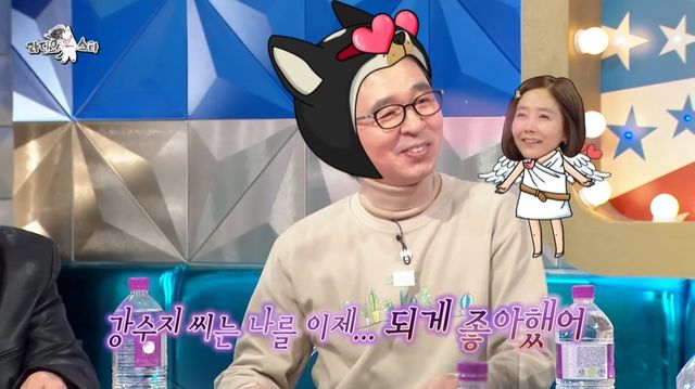 유세윤은 "국진이 형도 방송에서 만나서 비슷한 계기로 사랑을 확인한 경우"라고 말했고, 김구라도 "강수지 씨가 적극적으로 한 거다. 맞지 않나. 과정은 모르지만 방송에서 보여지길 강수지 씨가 적극적이었다"고 거들었다.