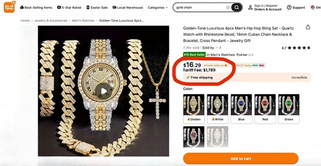 한 미국 소비자는 테무에서 16달러(약 2만 3000원)에 판매되는 시계를 주문하려다 관세 비용이 1789달러(약 260만원)로 책정된 걸 보고 놀라움을 감추지 못했다.