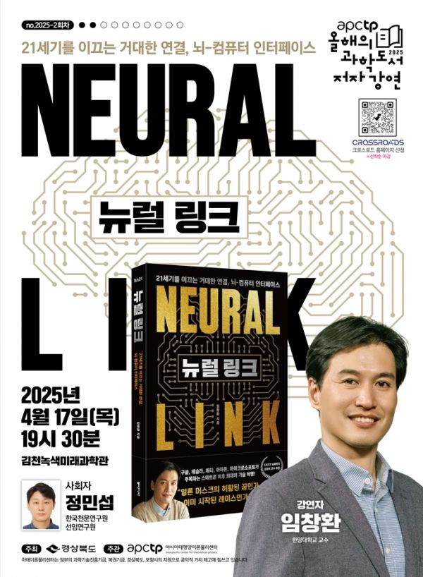 이번 강연은 4월 17일 오후 7시 30분, APCTP가 선정한 올해의 과학도서 중 하나인 『뉴럴링크』의 임창환 저자(한양대학교 전기생체공학부 교수)를 초청해 경북 김천녹색미래과학관 세미나실에서 진행한다.