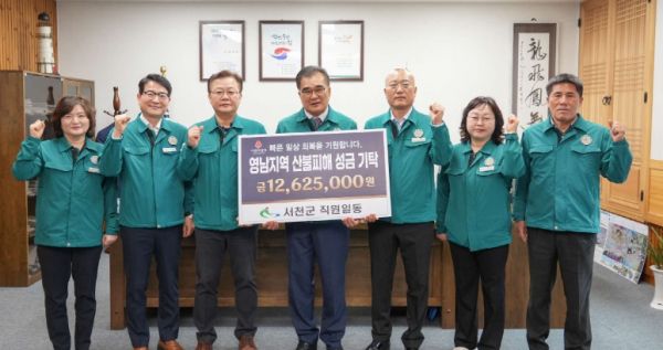 이번 성금은 산불 피해 지역의 조속한 복구를 염원하며 서천군 전 공직자가 자발적으로 십시일반 정성을 모아 마련한 것으로, 갑작스러운 재해로 어려움을 겪고 있는 이웃들에게 희망을 전하고자 하는 따뜻한 마음을 담았다.