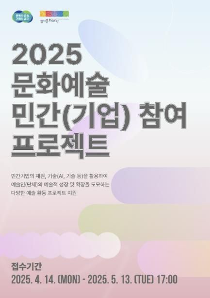 [와이뉴스] 경기문화재단은 ‘2025 문화예술 민간(기업) 참여 프로젝트’공모를 오는 4월 11일부터 시행한다고 밝혔다. 이번 공모는 민간기업의 자원과 예술인(단체)의 창의성을 결합해 새로운 문화 콘텐츠를 개발하고, 도민의 문화향유 기회를 넓히기 위해 기획됐다. 민간과 예술계의 지속가능한 협력 모델을 발굴하고, 지역 문화 생태계의 다양성과 공공성을 강화하는 데 목적이 있다.