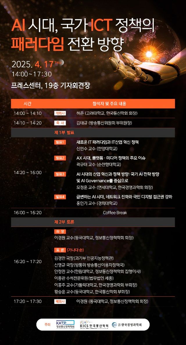 과거 ‘ICT 강국’으로 불렸던 대한민국이 최근에는 ‘AI 추격국’으로 평가받고 있는 상황에 대해 비판적으로 고찰하고, 새로운 정부가 추진해야 할 ICT 정책의 혁신 방향에 대한 깊이 있는 논의가 이뤄질 전망이다.