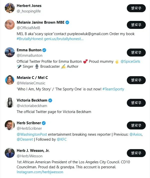 KFC X(트위터) 팔로우를 보면 11명이 있음.