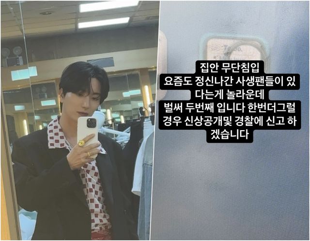 10일 이특은 자신의 인스타그램 스토리에 "집안 무단 침입"이라며 "요즘도 정신나간 사생 팬들이 있다는게 놀라운데, 벌써 두 번째입니다. 한 번 더 그럴 경우 신상 공개 및 경찰에 신고하겠습니다"라는 경고를 남겼다.