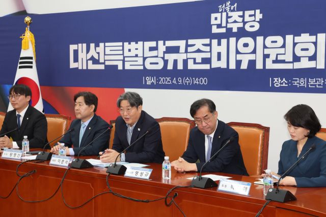 민주당 대선특별당규준비위원회(이춘석 위원장)는 10일 오후 회의를 열고 경선 규칙을 확정할 것으로 알려졌다. 노종면 대변인은 이날 기자들과 만나 "오늘 경선 룰이 논의되고 이르면 결정도 될 것으로 예상한다"고 전했다. 위원회가 구성된지 이틀만에 대선 경선 룰이 결정되는 셈이다. 현재 김동연 경기도지사, 김두관 전 의원이 출마 선언을 한 바 있고, 김경수 전 경남도지사도 출마 대열에 합류할 것으로 보이는데, 이들의 주장이 반영되기 어려운 상황이다.