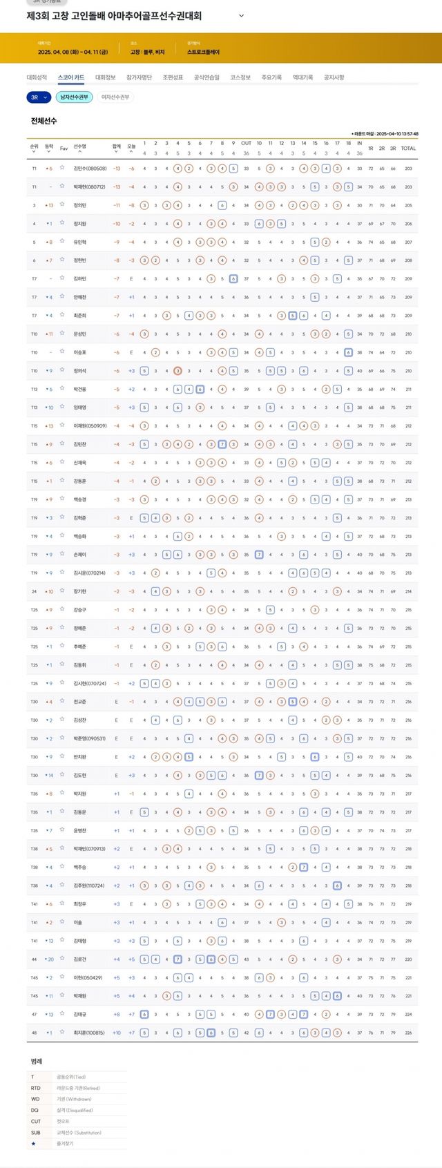 -컷오프 : 2025년(남자 3오버파 147타 48명, 여자 4오버파 148타 49명) 2024년(남자 1오버파 145타 48명, 여자 3오버파 147타 48명)