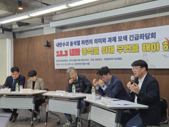 참여연대와 민주사회를위한변호사모임이 9일 서울 종로구 참여연대 아름드리홀에서 주최한 '내란수괴 윤석열 파면의 의미와 과제 모색 긴급좌담회'에 모인 각계 전문가들은 "윤석열 대통령이 일으킨 내란은 그의 파면 이후에도 끝나지 않았다"며 비상계엄 사태 재발 방지를 위해 동조세력들을 철저히 수색·처벌해야 한다고 강조했다.
