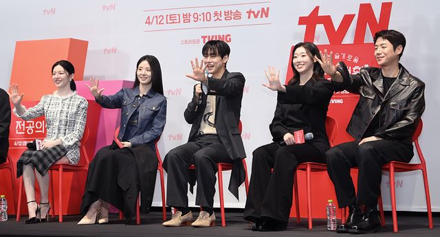 이날 현장에는 신원호 크리에이터, 이민수 감독을 비롯해 배우 고윤정, 신시아, 강유석, 한예지, 정준원이 자리했다.