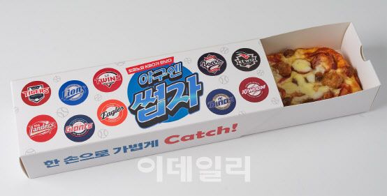 최근 야구 응원에 최적화된 ‘한손 피자’격인 ‘썹자’(SUBZZA, SUB PIZZA 합성어)를 내놓은 도미노피자가 그런 경우다. 도미노피자는 KBO리그 개막을 기념해 10개 구단 로고가 새겨진 특별 패키지에 썹자를 넣어 내놨다. 썹자는 야구 응원을 하며 한 손으로 편하게 먹을 수 있도록 직사각형 모양을 띤 것이 특징이다. 도미노피자 관계자는 “KBO 리그 야구팬이라면 썹자와 함께 맛있고 즐겁게 응원하며 스페셜 패키지에서 자신의 응원 구단을 찾는 재미도 즐기길 바란다”고 설명했다.