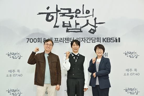 10일 오전 서울 영등포구 KBS 신관 국제회의실에서 KBS 1TV '한국인의 밥상' 기자간담회가 진행됐다. 이날 배우 최수종과 임기순 PD, 전선애 작가가 참석했으며, 기자간담회 진행은 엄지인 아나운서가 맡았다.