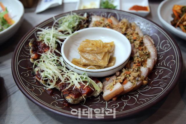 | 장의 도시 전북 순창군이 최근 새로 개발한 순창 삼합. 미슐랭 1스타 유현수 셰프와 협업으로 개발한 이 음식은 순창의 고추장과 간장, 된장(청국장)을 이용해 각각의 장류 맛을 느낄 수 있도록 만들어졌다. |
