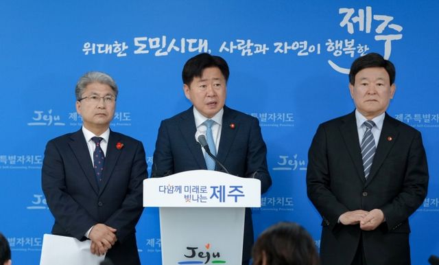오 지사와 의 의장은 김 교육감은 11일 도청 기자실에서 공동담화문을 발표해 "1948년 제주 4·3이 발발한 지 77주년, 2018년 제주도와 제주 4·3 평화재단이 민간 기록물 수집에 착수한 지 7년 만의 쾌거"라며 이같이 말했다.