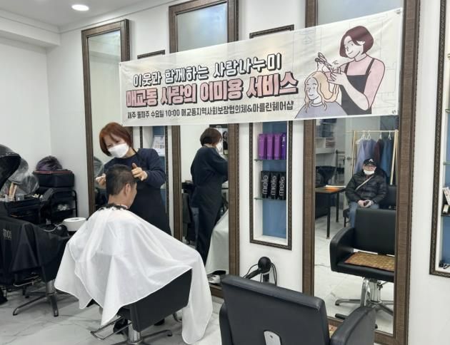 '사랑의 이미용 서비스' 사업은 매월 두번째 수요일 10시부터 12시까지 매교동 지역사회보장협의체 위원 김서희 원장의 재능기부로 이루어지고 있으며, 이미용을 받기 원하는 관내 도움이 필요한 이웃은 매월 마를린 헤어로 찾아가면 커트 서비스를 무료로 받을 수 있다.