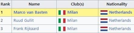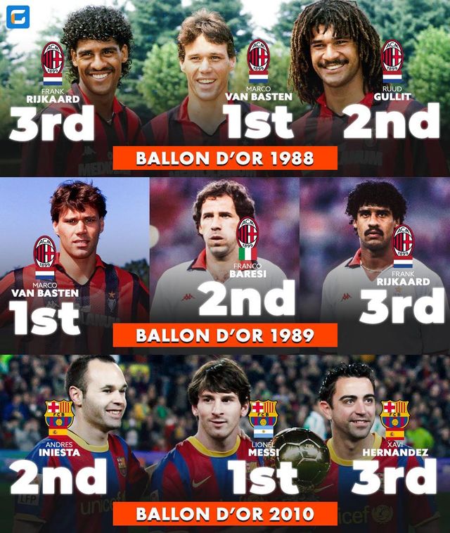 그중에 1988년은 현재까지 최초이자 마지막으로 발롱도르 포디움에 같은 국적+같은 클럽 선수 3명이 함께 들어간 사례