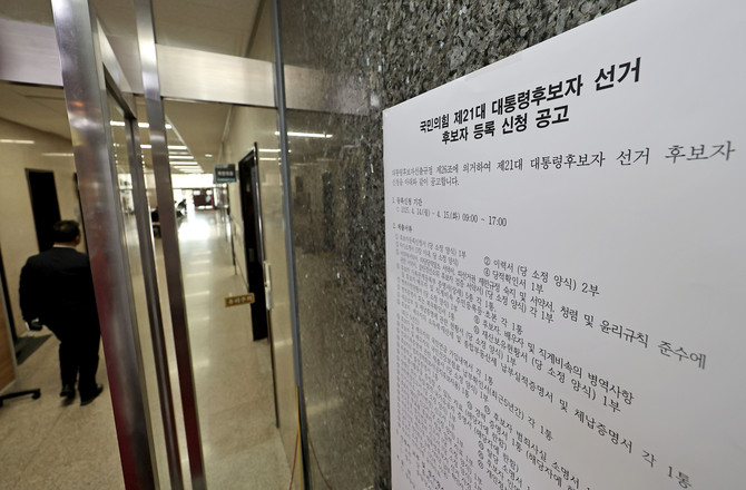 국민의힘 대통령후보자 선거 등록 신청 공고. ⓒ 연합뉴스