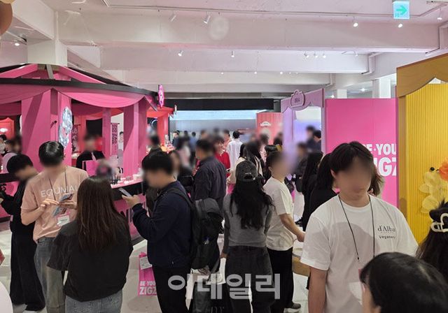 11일 서울시 성수동 복합문화공간 XYZ의 지그재그 ‘뷰티 페스타’ 팝업스토어(임시 매장). 핑크색 배경으로 꾸며진 매장 입구에서는 오전부터 20·30여성들이 줄을 늘어서며 입장을 대기하고 있었다. 매장 내부로 들어서니 ‘에스쁘아’, ‘에크멀’, ‘무지개맨션’, ‘에뛰드’, ‘달바’ 등 뷰티 브랜드 부스가 알차게 들어차 있다. 부스 직원은 방문객에게 체험을 권유하며 저마다 제품을 홍보하는데 분주했다. 매장은 벚꽃을 구경하러 온 2030 커플부터 인근 회사원, 유명 뷰티 인플루언서까지 북적거리며 활기를 띠었다.