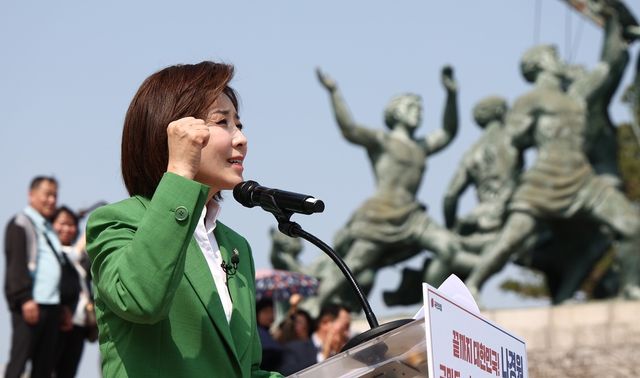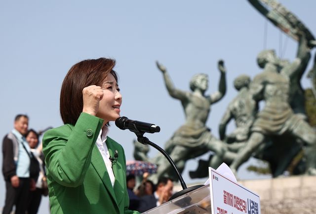 나 의원은 "이번 대통령 선거의 본질은 체제 전쟁"이라며 "자유대한민국을 지켜낼 것이냐, 아니면 반자유·반헌법 세력에게 대한민국을 헌납할 것이냐는 제2의 6·25 전쟁이자 건국 전쟁"이라고 주장했다.