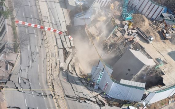 이곳에서는 '투아치(2arch)' 구조로 시공 중인 지하 터널 내부의 가운데 기둥에 균열이 발생한 상황이었으며, 통제 이후 안전조치가 이뤄지고 있었다.