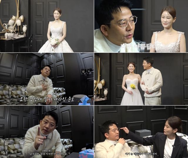 드디어 김지민의 웨딩 드레스 자태가 공개되었다. 김준호는 아름다운 김지민의 모습에 눈을 떼지 못하고 연신 감탄을 자아냈다. 김지민이 눈물을 글썽이자 김준호 또한 눈시울이 붉어지며 “드레스를 입으니까 현실로 다가오네요”라는 말과 함께 벅찬 감정을 드러냈다.