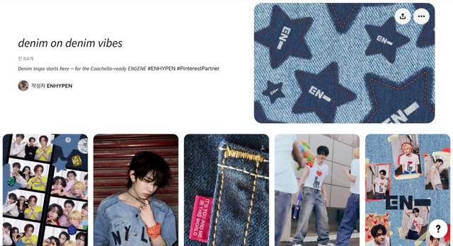 엔하이픈은 최근 핀터레스트 계정을 개설하며 몇 가지 감각적인 이미지를 공유했는데요. 'denim on denim vibes'라는 제목의 보드에는 데님을 입은 멤버들의 이미지와 함께, 눈에 띄는 타이포그래피가 담겨 있었습니다. 바로 엔하이픈 노래 가사였죠! 팬들은 이를 보고 “코첼라 셋리스트를 간접적으로 공개한 것 아니냐”며 기대감을 높이고 있어요. 핀터레스트를 활용해 색다른 방식으로 팬들과 소통한 셈이죠.