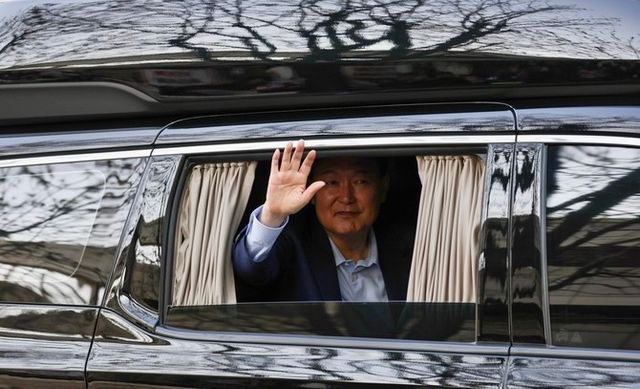 윤석열 전 대통령이 11일 한남동 관저를 떠나 사저가 있는 서초구 아크로비스타에 도착하며 지지자들을 향해 손을 흔들고 있다. ⓒ 연합뉴스