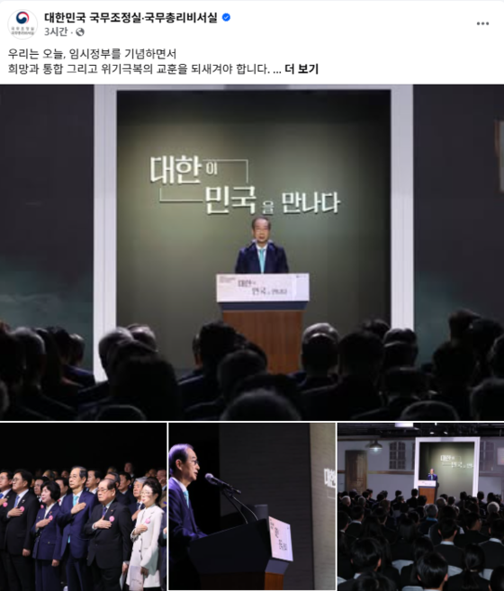 한덕수 대통령 권한대행 국무총리는 11일 "우리는 오늘, 임시정부를 기념하면서 희망과 통합 그리고 위기극복의 교훈을 되새겨야 한다"고 밝혔다.