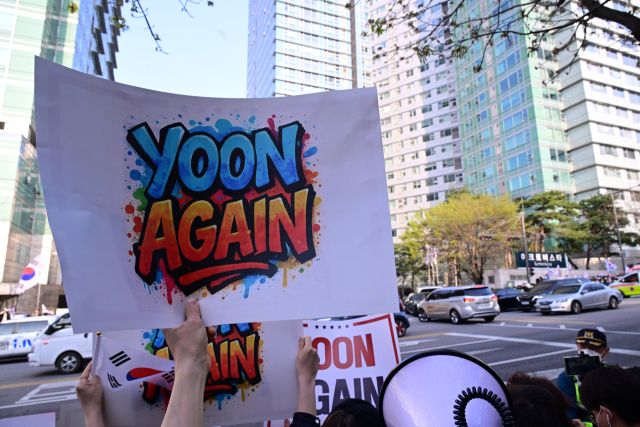 윤 전 대통령은 5분가량 정문에 머무른 뒤 길을 따라 선 지지자들도 만나 악수했다. 윤 전 대통령은 지지자로부터 'MAKE KOREA GREAT AGAIN(한국을 다시 위대하게)' 문구가 적힌 빨간 모자를 받아 쓴 채 지지자들에게 인사했다. 이 문구는 도널드 트럼프 대통령의 첫 대선 슬로건이었던 'MAKE AMERICA GREAT AGAIN(미국을 다시 위대하게)'를 차용한 것으로 추정된다.