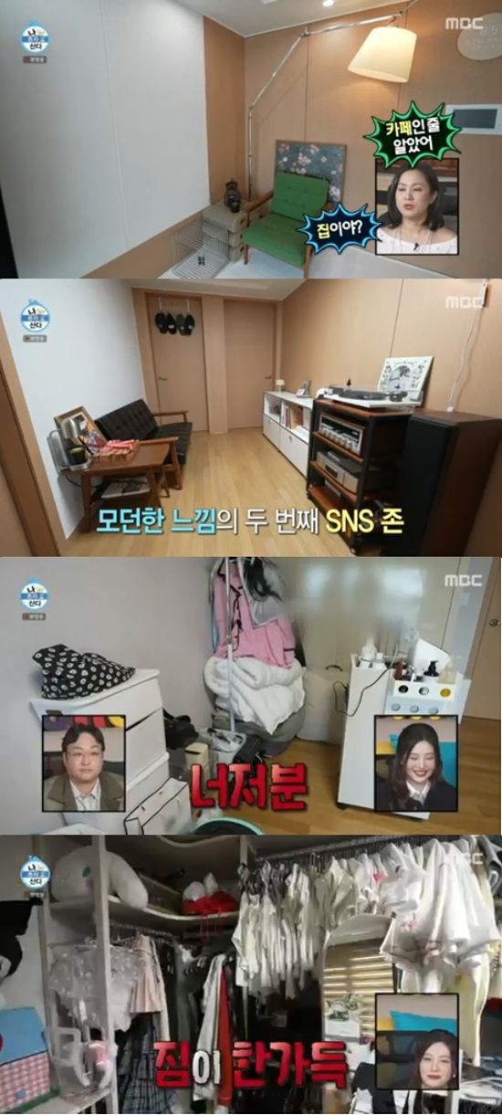 전현무와 박나래는 "이게 집이야?", "카페인 줄 알았다"며 조이의 SNS존을 보고 놀라워했다. 하지만 조이의 SNS존 옆으로는 각종 짐들이 너저분하게 놓여 있었다.