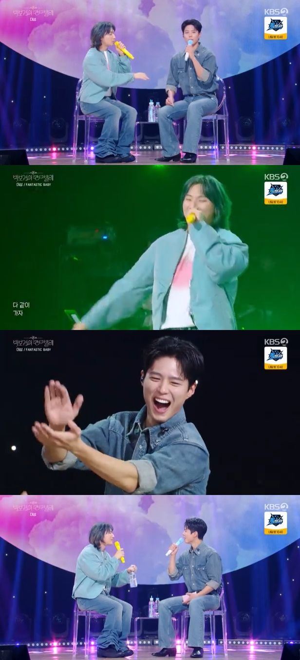 19만에 첫 앨범으로 돌아온 대성에게 박보검은 "어쩜 이렇게 무대를 신나게 즐겨주시고, 여기 계신 모든 분들의 마음을 흔들어놨다 장난 아니었어요"라며 감탄했다.